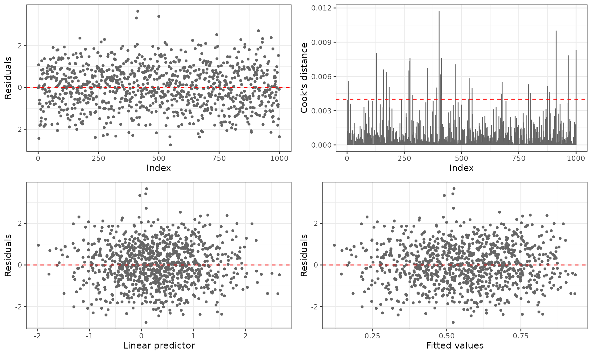 Diagnostic plots (base R or ggplot2) |
