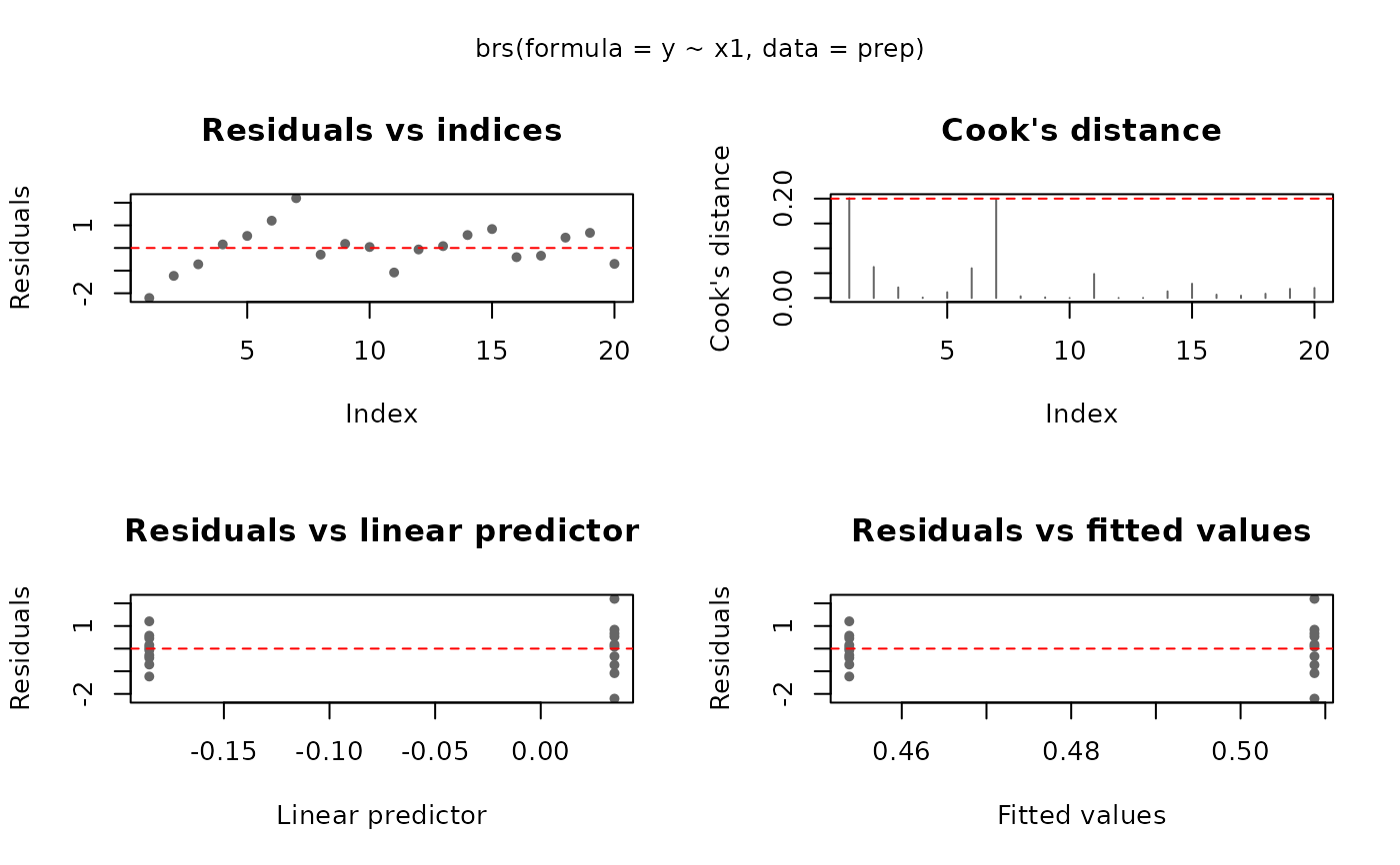caption = c("Residuals vs indices", "Cook's distance", "Residuals vs linear predictor",
