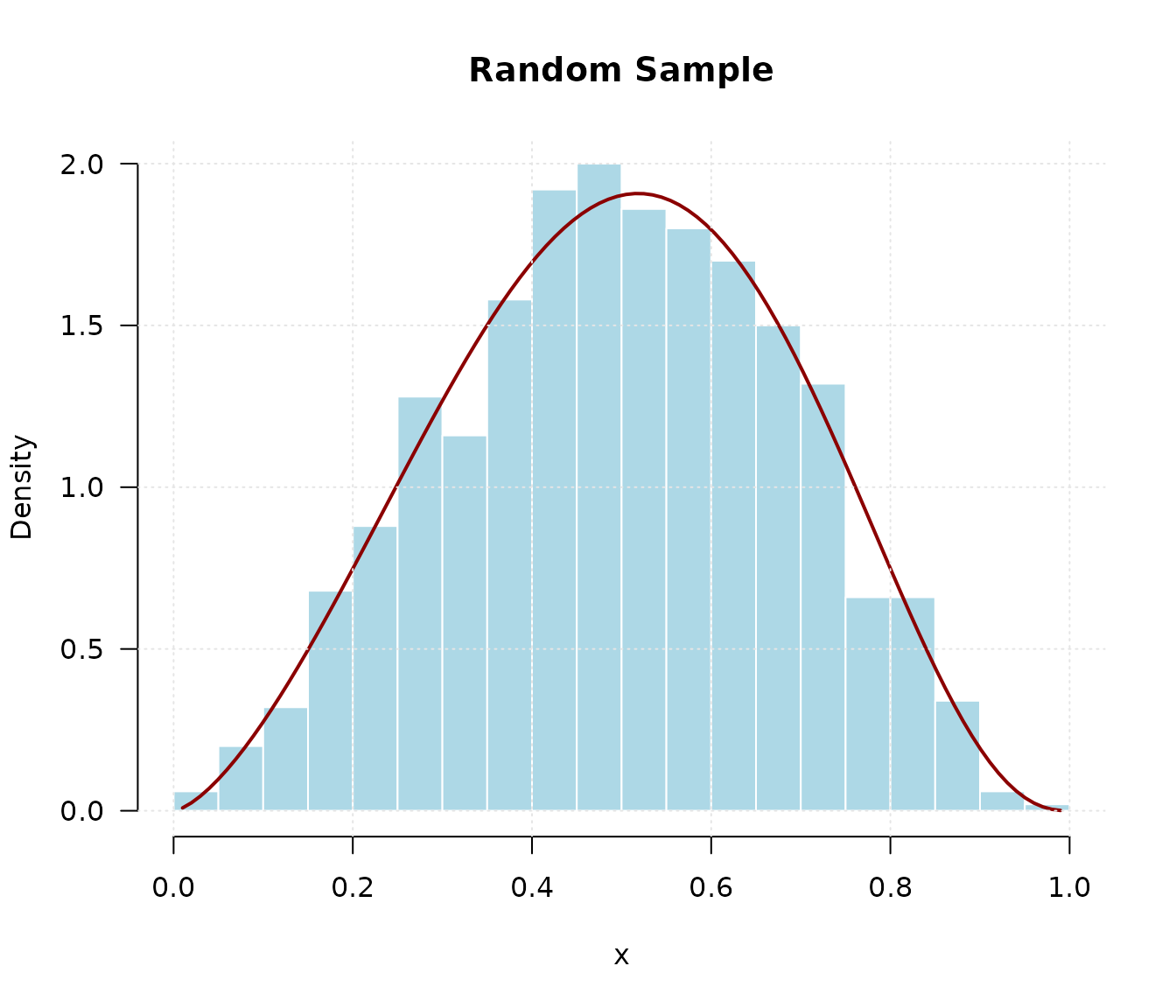 main = "Random Sample", xlab = "x", ylab = "Density", las = 1