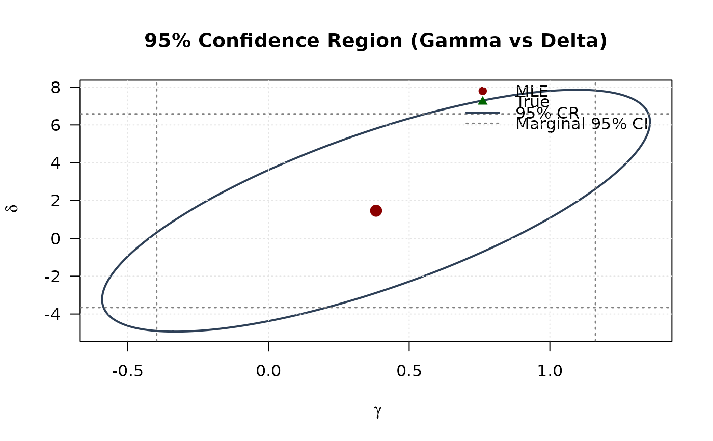 main = "95% Confidence Region (Gamma vs Delta)", las = 1)