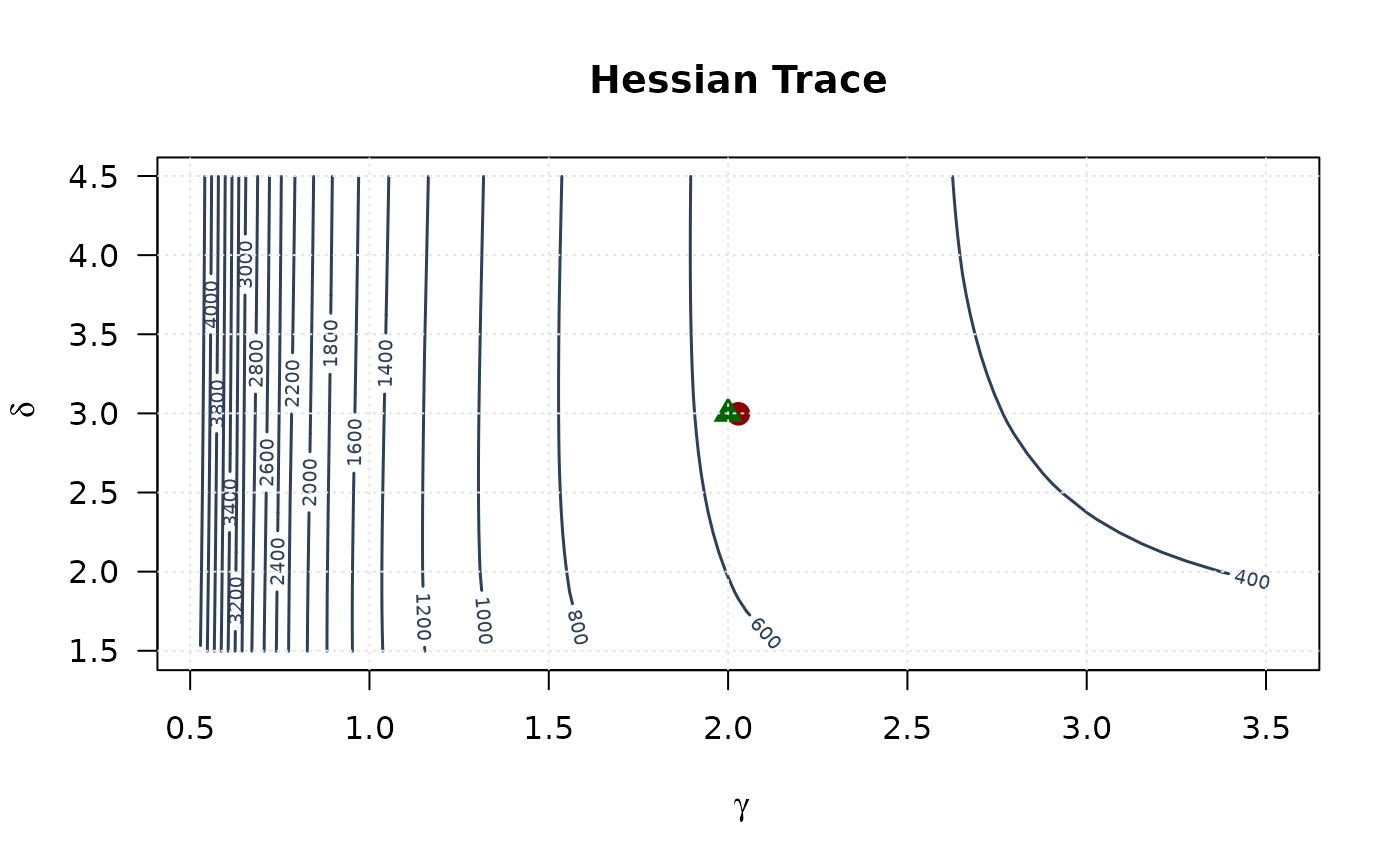 shape2 = delta + 1 (\(\delta+1\)). The components of the Hessian
