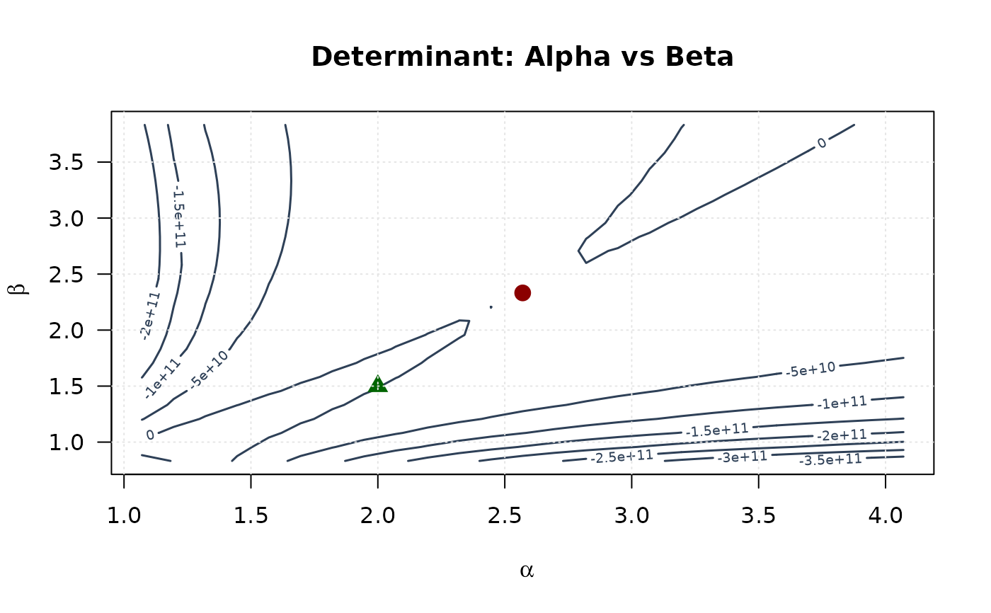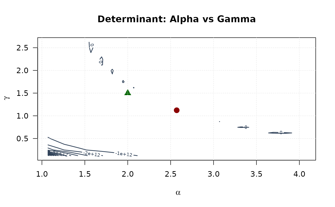 main = "Determinant: Alpha vs Gamma", las = 1,