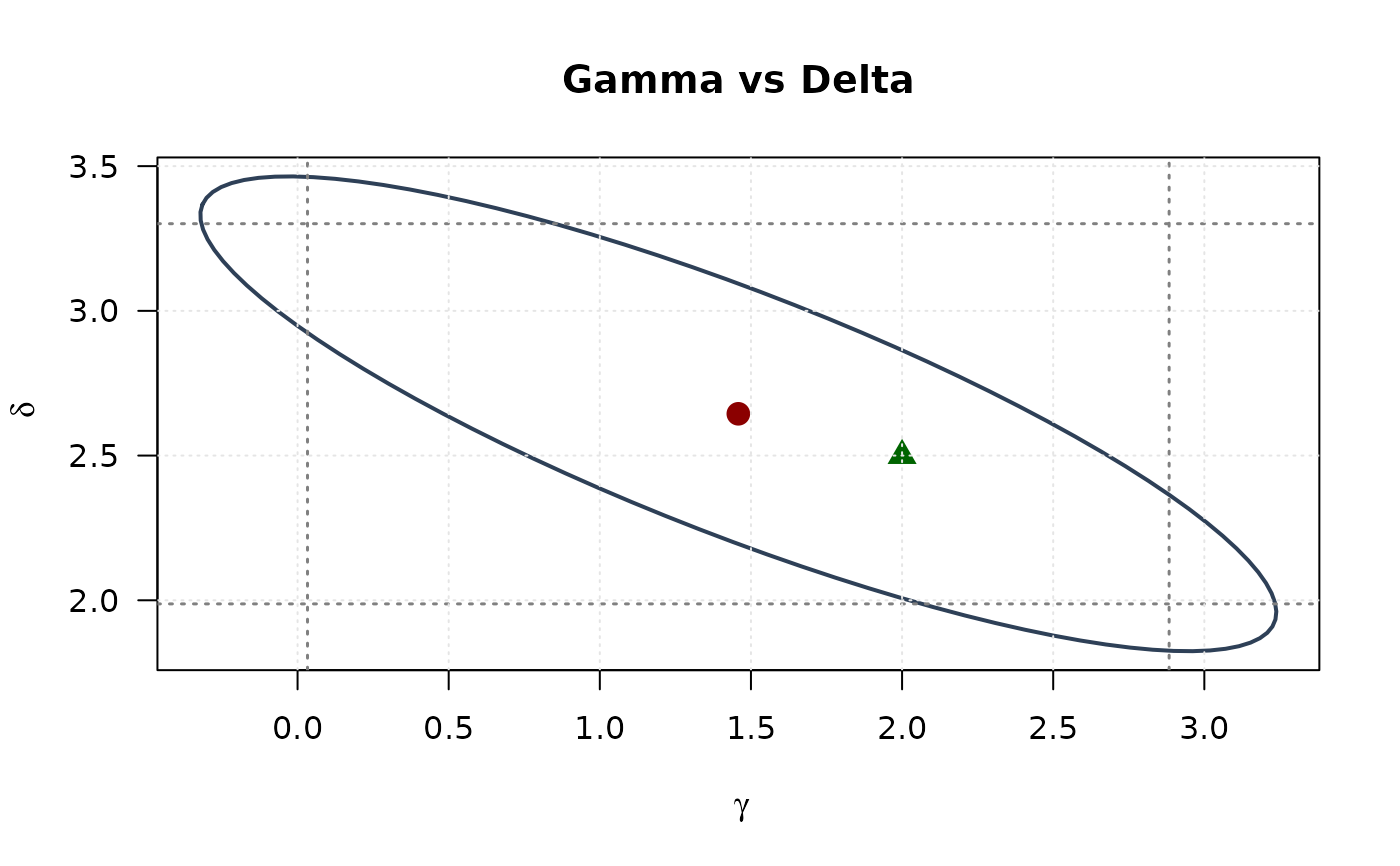 main = "Gamma vs Delta", las = 1, xlim = range(ellipse_gd[, 1], ci_gamma_gd),