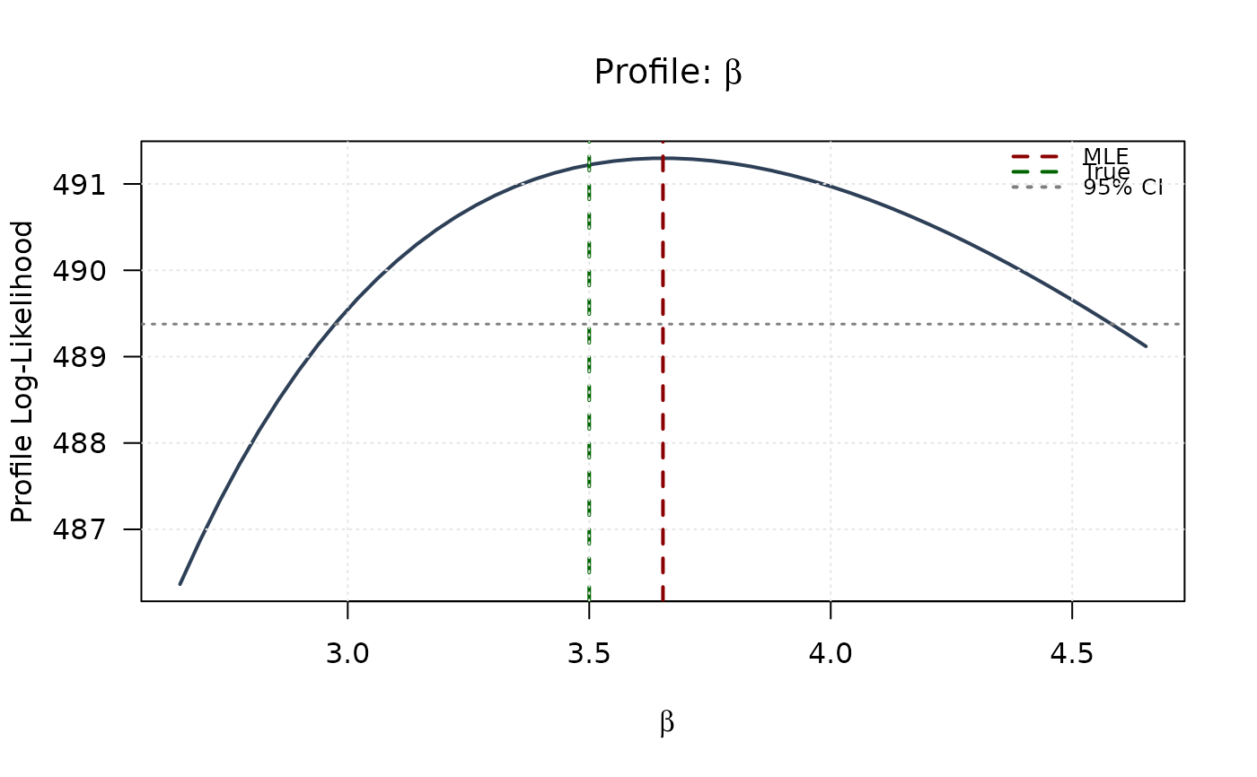 xlab = expression(beta), ylab = "Profile Log-Likelihood",