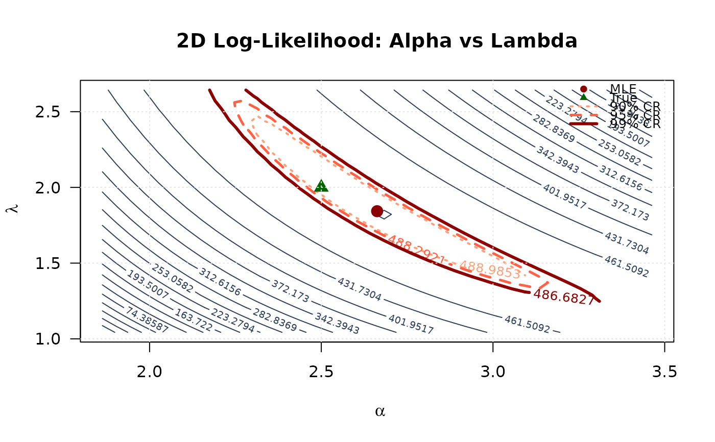 ll_surface_al[i, j] <- -llekw(c(alpha_2d_2[i], mle[2], lambda_2d[j]), data)