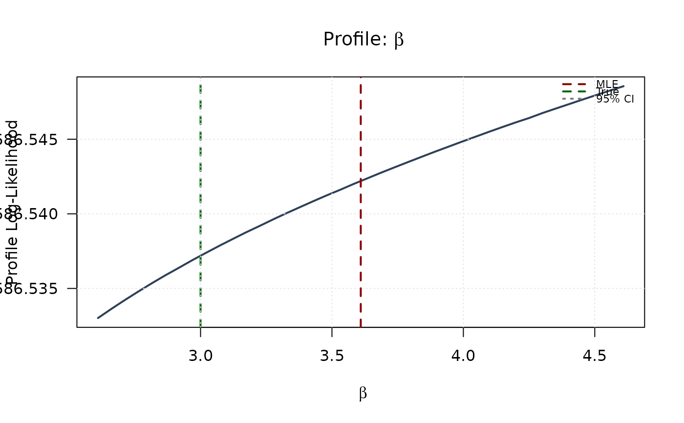 xlab = expression(beta), ylab = "Profile Log-Likelihood",