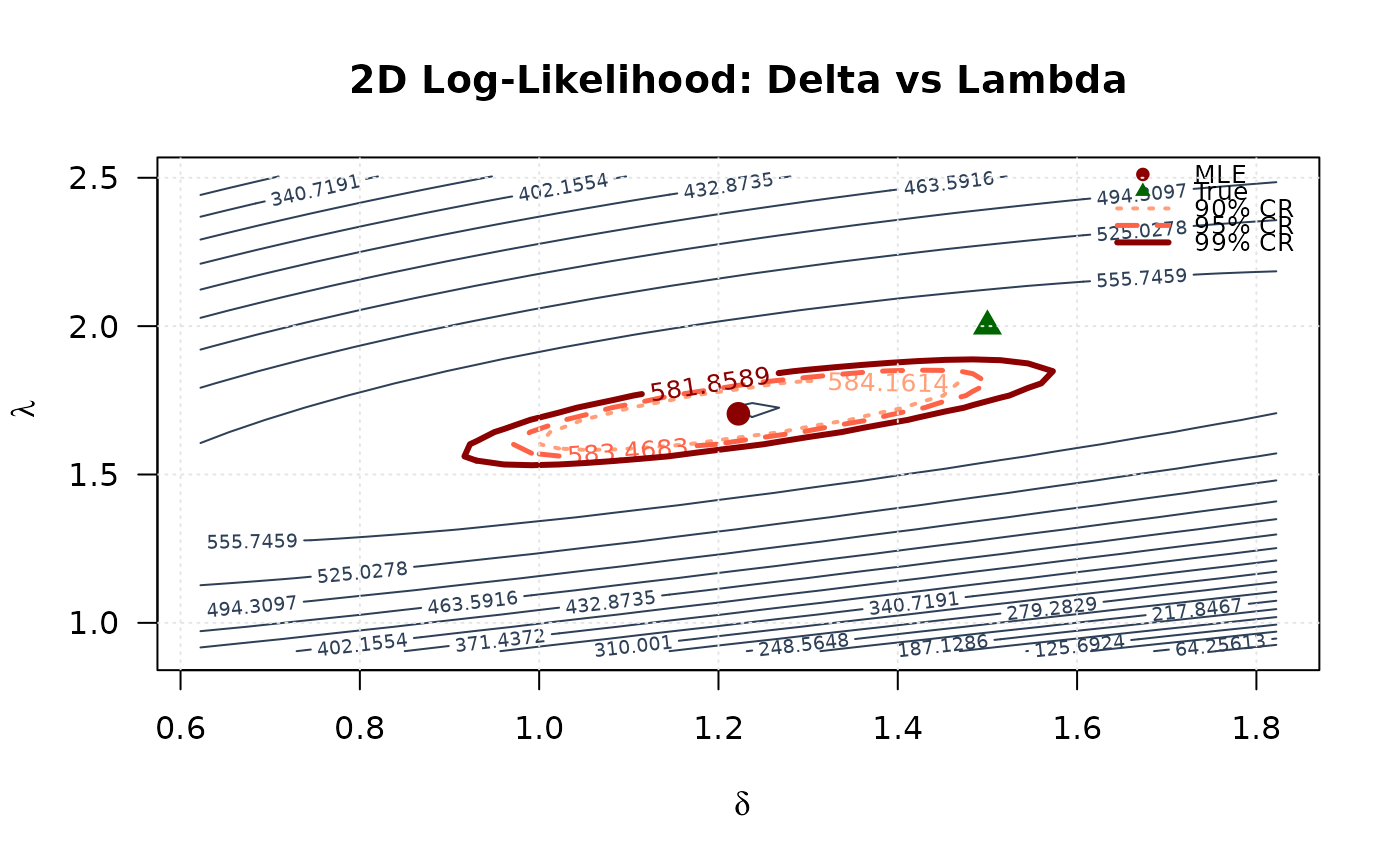 ll_surface2[i, j] <- -llkkw(c(mle[1], mle[2], delta_2d[i], lambda_2d[j]), data)