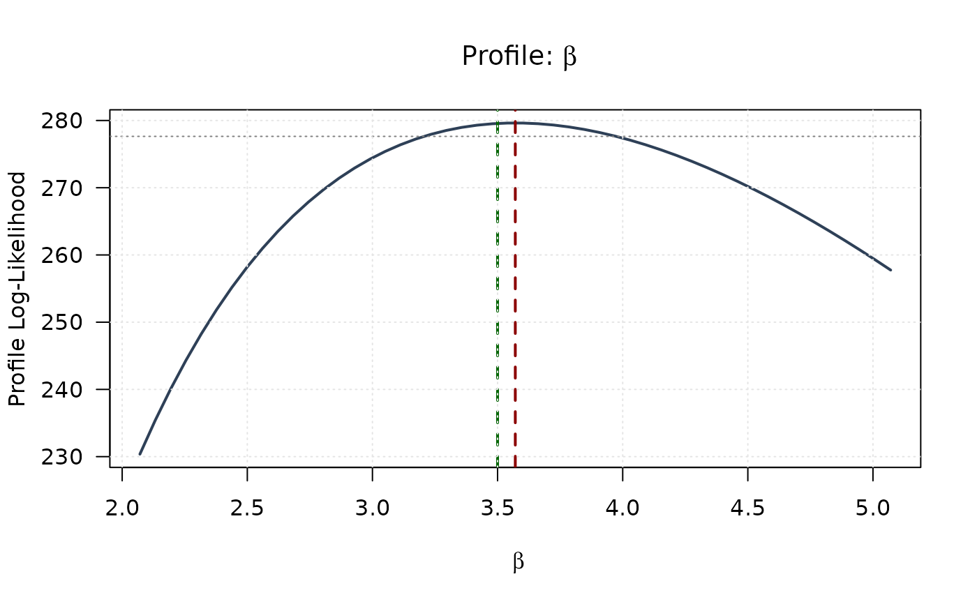 main = expression(paste("Profile: ", beta)), las = 1)