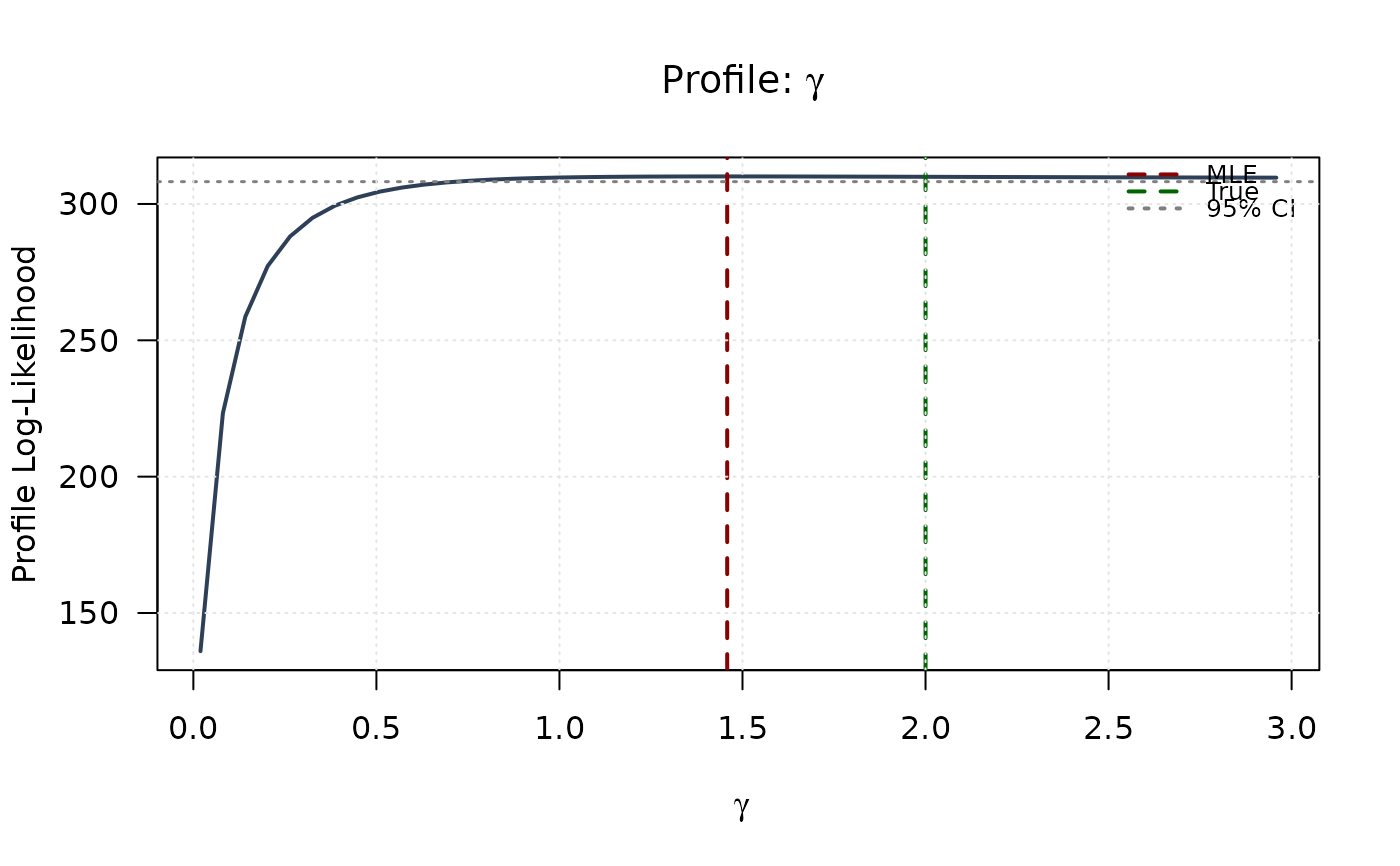 xlab = expression(gamma), ylab = "Profile Log-Likelihood",