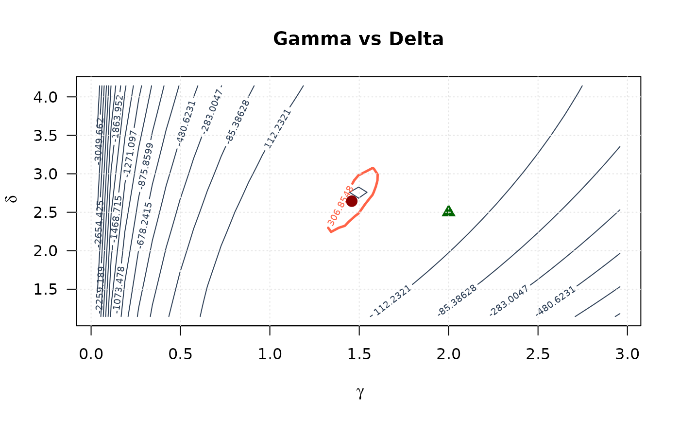 ll_surface_gd[i, j] <- -llmc(c(gamma_2d[i], delta_2d[j], mle[3]), data)