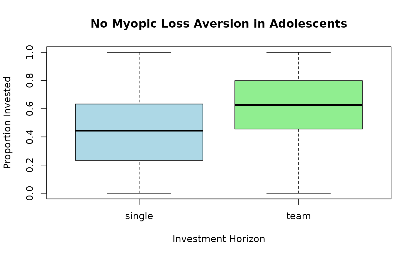 Sutter, M., Kocher, M.G., Glätzle-Rützler, D., and Trautmann, S.T. (2015). No Myopic Loss Aversion in Adolescents? – An Experimental Note. Journal of Economic Behavior & Organization, 111, 169–176. doi:10.1016/j.jebo.2014.12.021